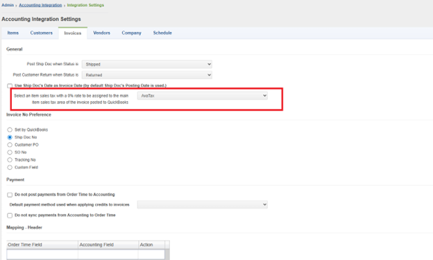If using QuickBooks Desktop integration, the user will need to set up a zero-rated Item Sales Tax. We use this item sales tax in QBD in order for the Order Time tax amount to be used. Some customers will already have this.