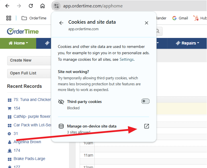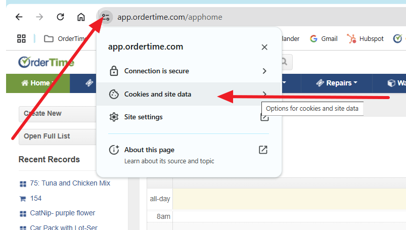 If you're experiencing issues in Order Time following a software update, you can quickly clear cookies and site data just for Order Time without affecting your other browser sessions. Here's how to do it right from the address bar.