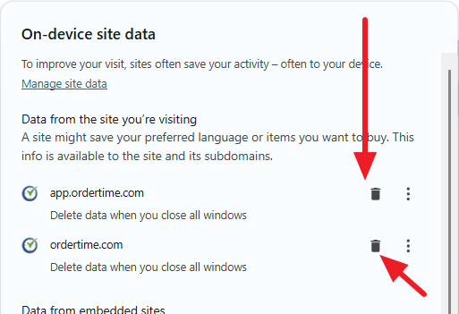 app.ordertime.com.Click "Remove" to delete all data for the site.
