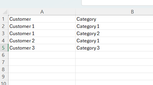 - When Importing Categories each combination of Customer and Category would require its own line
