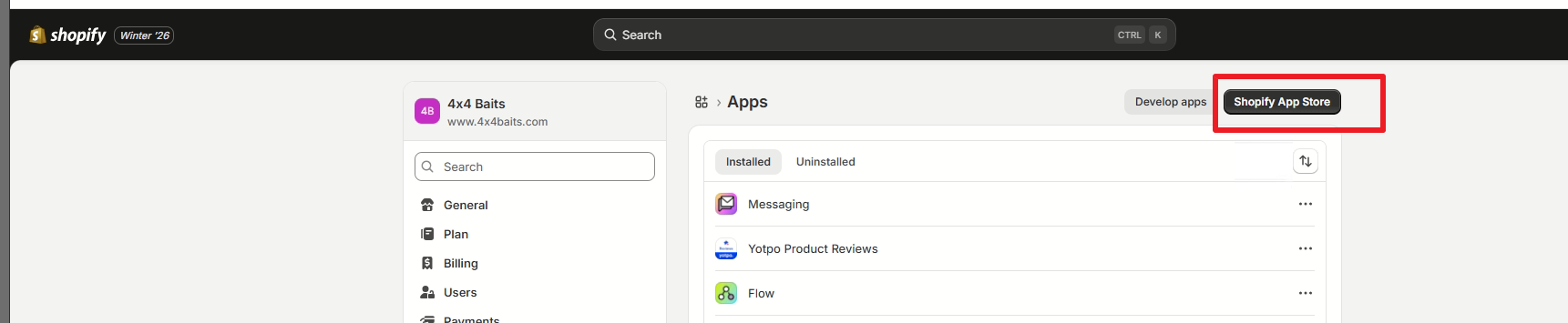 Click on Shopify App store